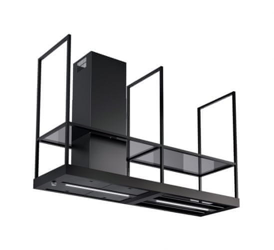 Faber T-Shelf EV8 BK Matt A180 kuhinjska napa je otočna kuhinjska napa. Ponaša se z industrijskim in elegantnim izgledom iz inoxa in stekla. Ponuja izbiro med 4 stopnjami hitrosti delovanja, pri čimer doseže pretok zraka do 700 m3 v eni uri. Zaznamuje jo upravljanje na zložljiv gumb. Ustrezno filtracijo in čistočo zraka zagotavlja vgrajen kovinski pralni maščobni filter, ki je enostaven za čiščenje.