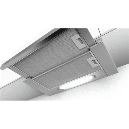 Bosch | Napa | DFT63AC50 Serija 4 | Razred energijske učinkovitosti D | Teleskopska | Širina 60 cm | 368 m³/h | Mehanska | Srebrna | LED Celoten opis
