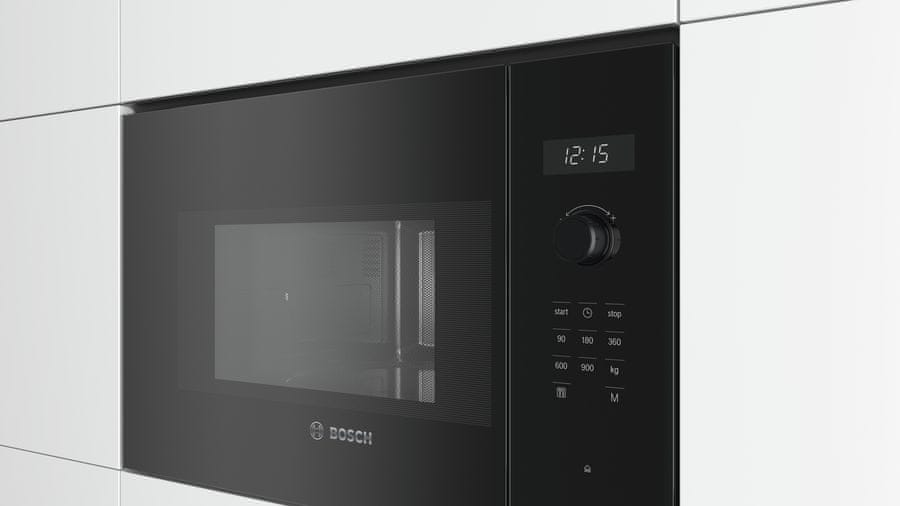 Bosch BFL554MB0 je vgradna mikrovalovna pečica, ki jo boste z veseljem uporabljali za hitro pripravo hrane, segrevanje ali odmrzovanje. Na voljo je 5 stopenj moči. Mikrovalovi dosežejo moč do 900 W.