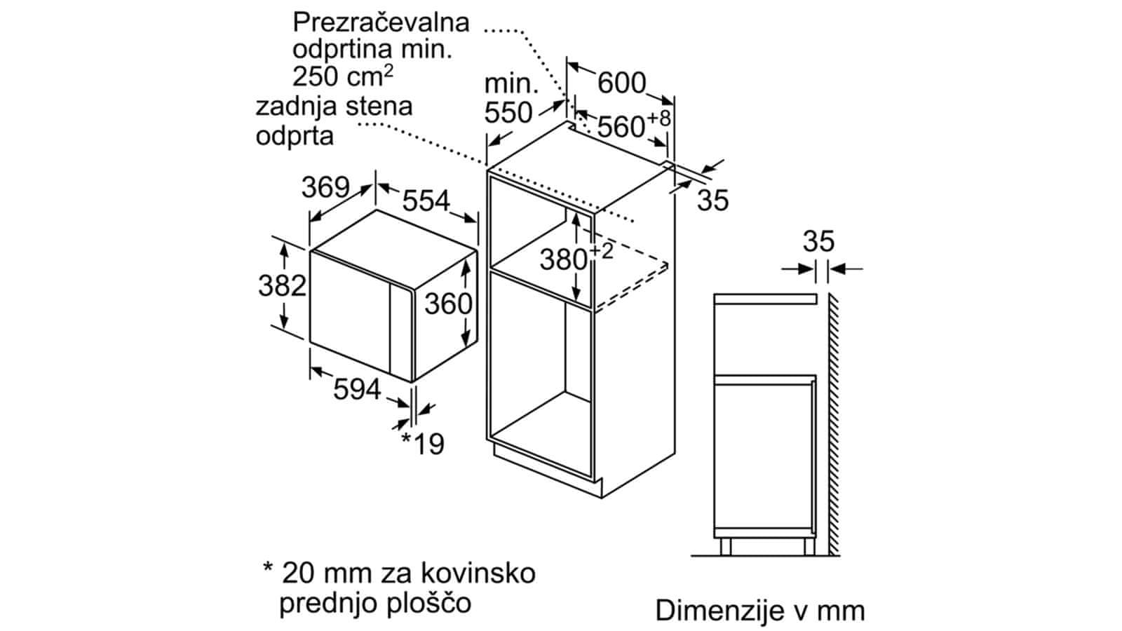 | Dimenzije niše (VxŠxG) | 380–382 × 560–568 × 550 mm |