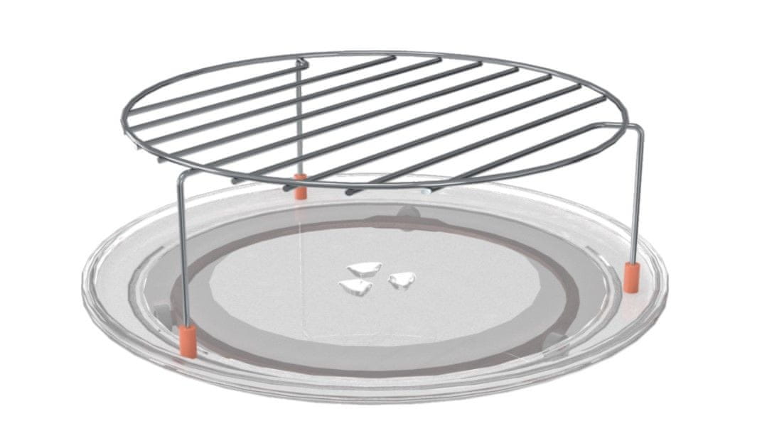 Premer steklenega vrtljivega krožnika meri 31,5 cm. Pečica omogoča tudi varnostno zaklepanje nadzorne plošče, tako da mali radovedneži ne morejo spreminjati nastavitev.
