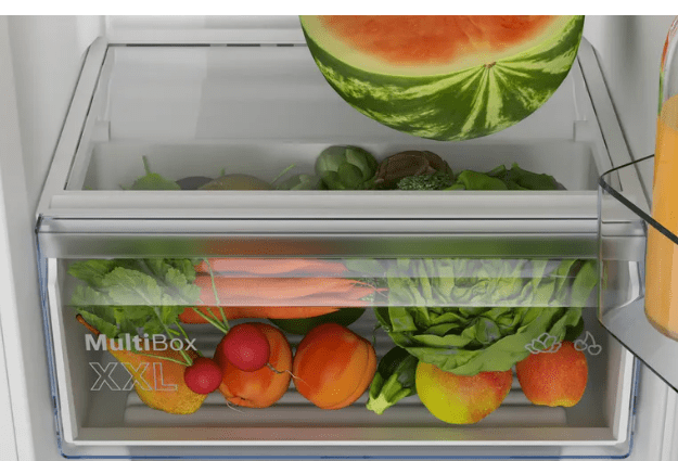 Posebej velik predal Multi Box XXL nudi več kot dovolj prostora za shranjevanje sadja in zelenjave.Eco Airflow pa omogoča idealno kroženje zraka in zagotavlja stalno raven temperature v hladilnem prostoru.