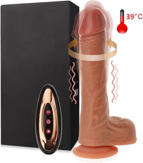 Neverjetno realističen penis, ogret na 39 °C, vibrator z 9 vibracijskimi funkcijami in 3 rotacijsko-drsnimi funkcijami.