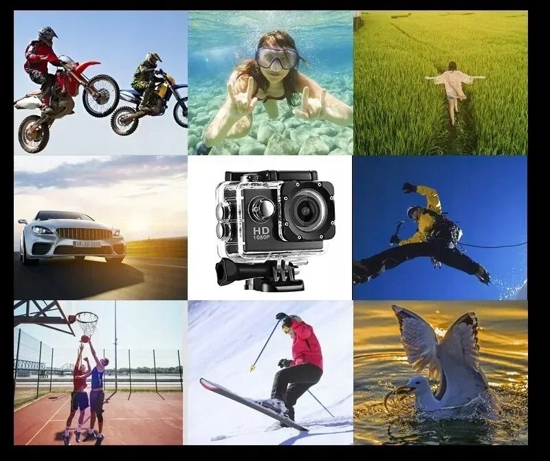 Predstavljamo vam sodobno športno kamero Full HD 1080p, ustvarjeno za ljubitelje aktivnosti na prostem in pod vodo. Zanesljiva, lahka in enostavna za uporabo – uporabna bo tako med potapljanjem kot gorskimi pustolovščinami.