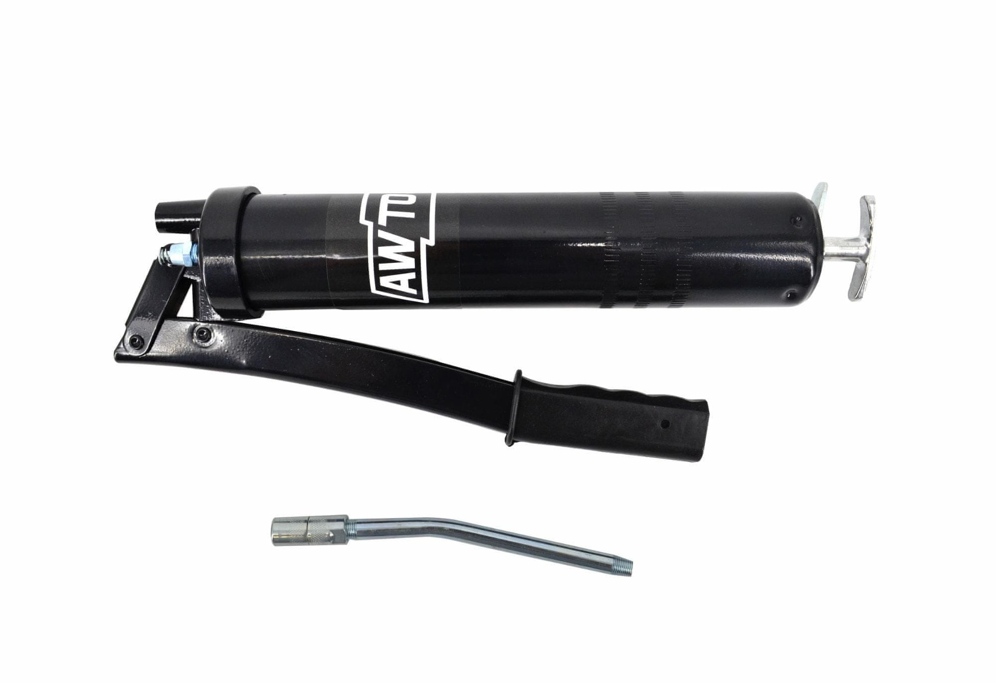 Trden prašno lakiran jekleni rezervoar. Narebričeno telo omogoča trden oprijem. Ročica se konča z ergonomskim plastičnim ročajem. Opremljena s togo cevjo s 4-čeljustno konico, ki se prilega standardnim kalamitom. Mast se dozira z batom, ki ga poganja ročna ročica Odzračevalni ventil sprosti tlak, ne da bi odstranil povezavo z mazalnim mestom Popoln za vzdrževanje kmetijskih in gradbenih strojev z velikim številom mazalnih mest Zasnovan za nanašanje maziv na komponente mehanizma, kot so ležaji, verige, zatiči ali sklepi. Tehnični podatki: Tlak: 34–55 MPa Kapaciteta: 500 ml Teža: 1,215 kg