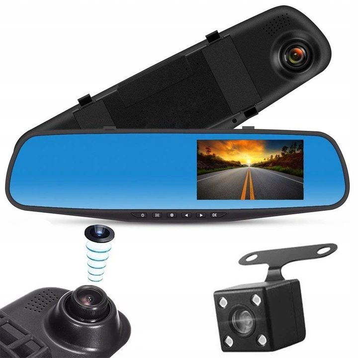 Vozniški video snemalnik z vzvratnim ogledalom in kamero za vzvratno vožnjo v polni HD ločljivosti