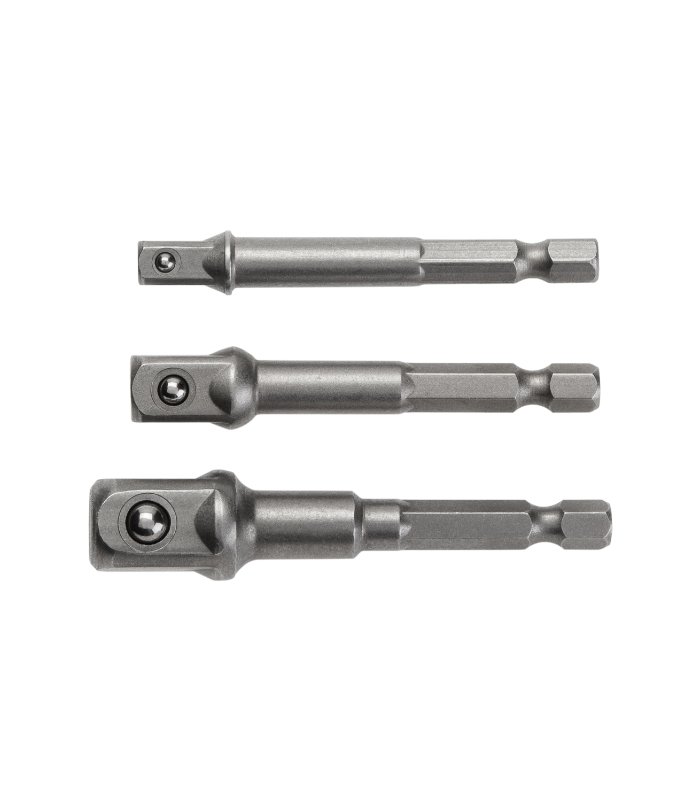 • Set adapterjev • Izdelano iz visoko kakovostnega legiranega krom vanadij jekla • Primerno za 1/4” vijačne nastavke • Primerno za 1/4”, 3/8″, 1/2 ” natične ključe