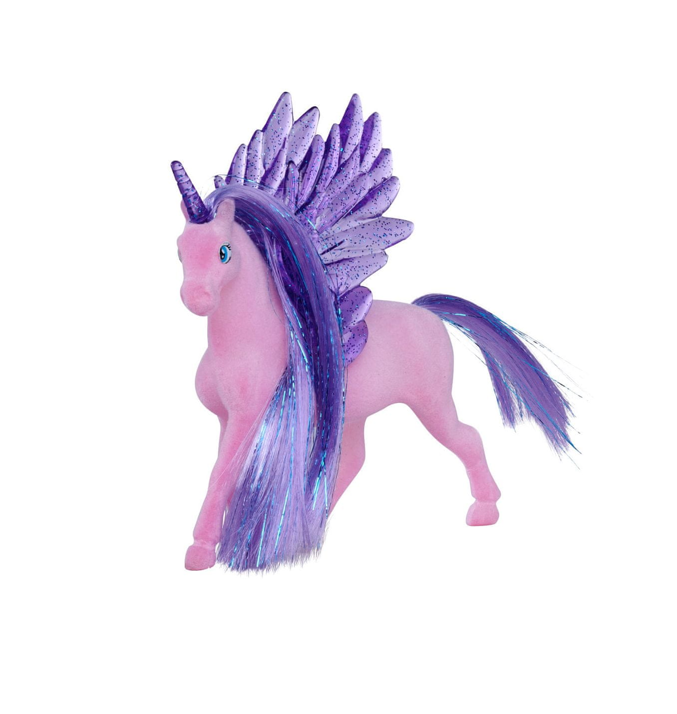 Figurica samoroga z bleščečimi polprozornimi krili in rogom. 2 vrsti. Velikost 11 cm.