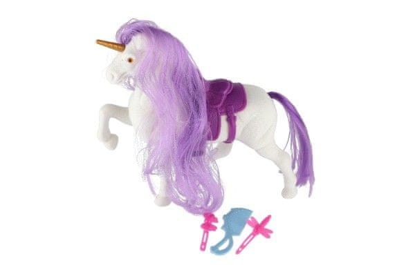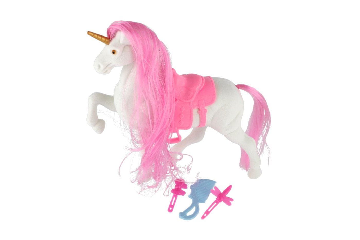 Krasen samorog z razčesano grivo za vsako pustolovščino. Vključuje sedlo in elegantne dodatke, ki bodo zagotovo navdušili male skrbnike. 21 × 25 × 6 cm Primerno za otroke, stare 3 leta in več