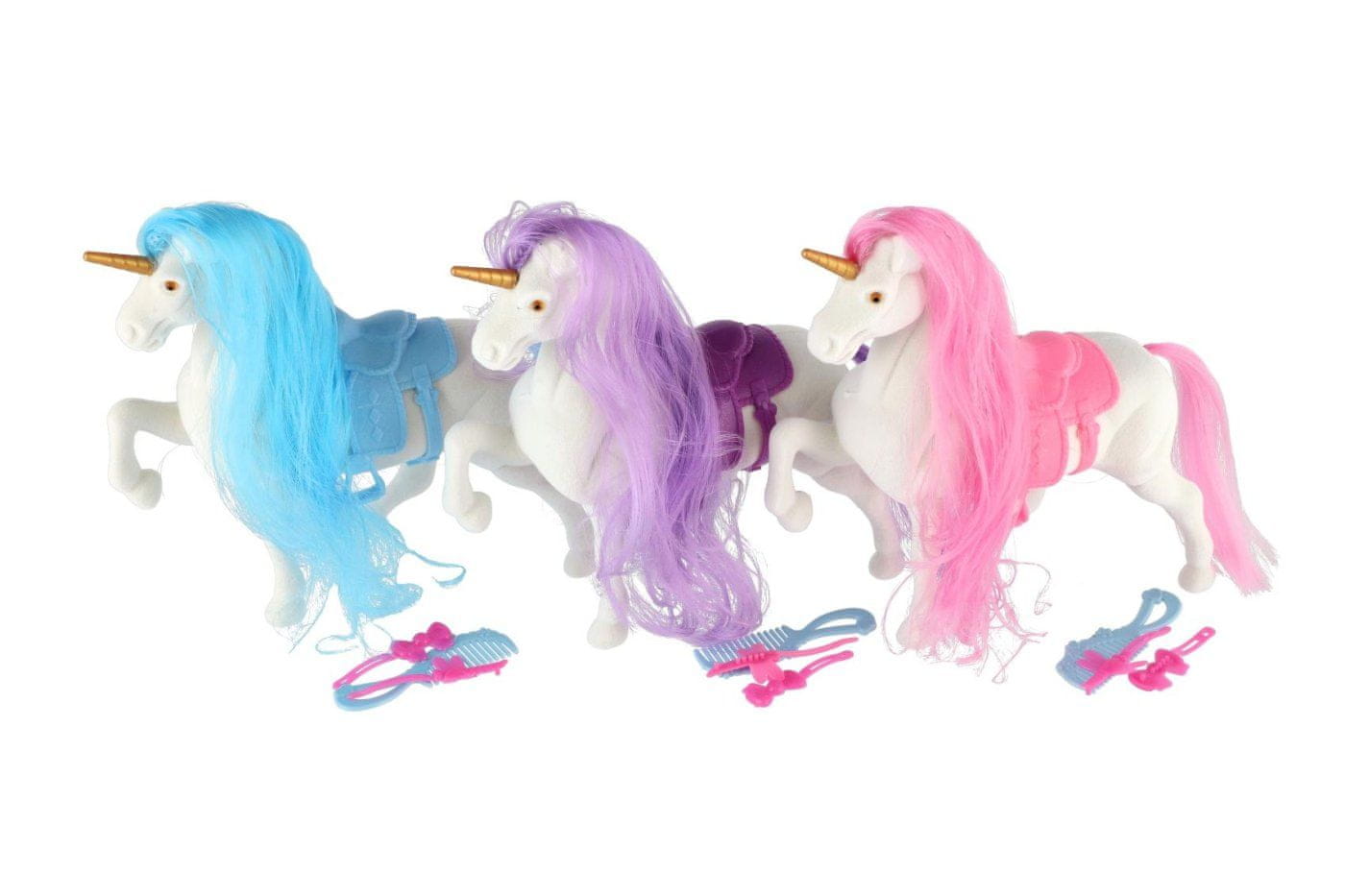 Teddies Unicorn/konj za česanje iz plastike s sedlom z dodatki 3 barve v vrečki