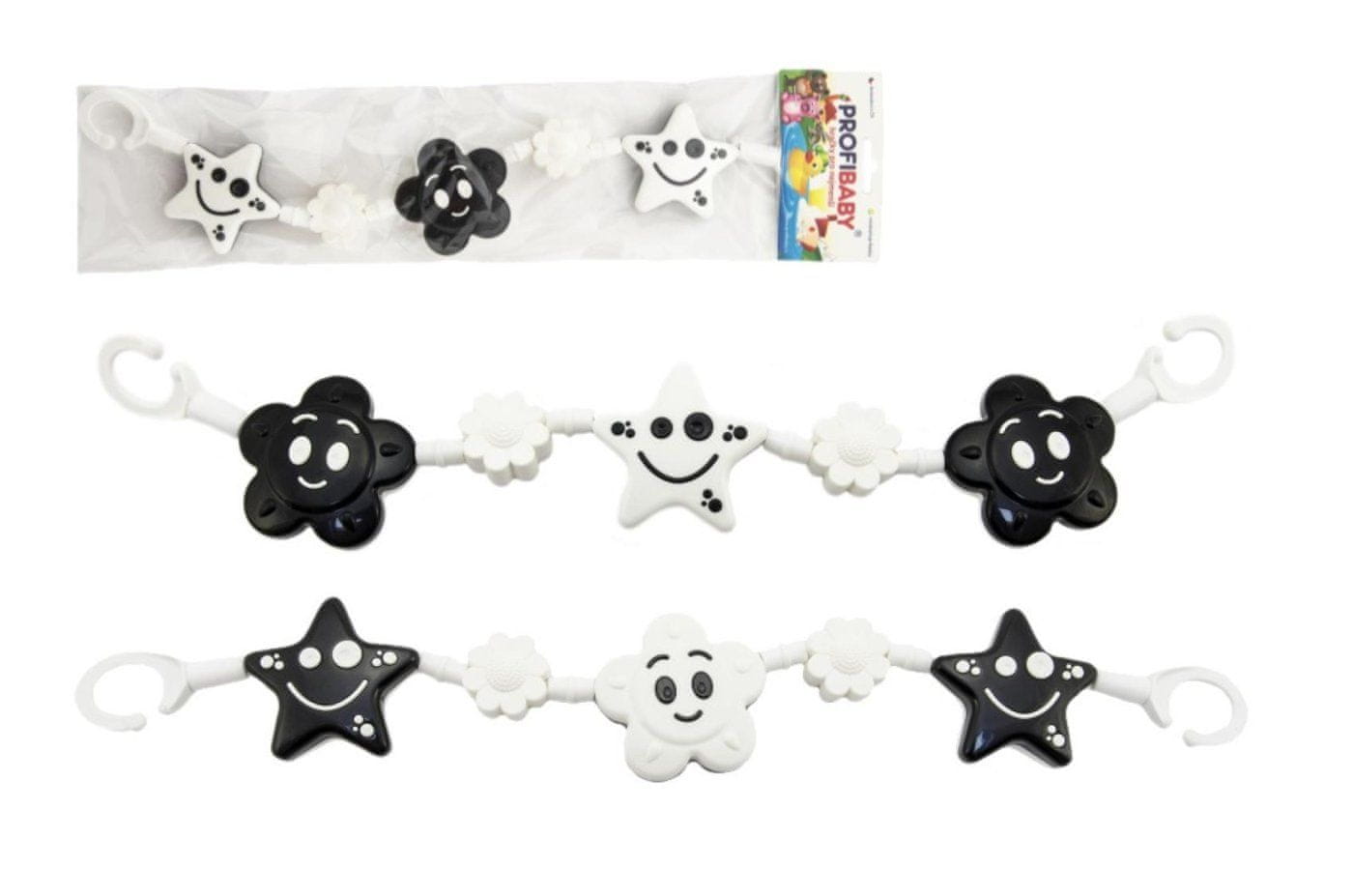 Igrače za voziček ne bodo le zabavale vašega otroka, temveč bodo tudi izboljšale njegovo vidno in otipno zaznavanje. Igračo lahko preprosto pritrdite na sedež vozička, tako da bo vedno pri roki. Dimenzije paketa 11 × 47 × 2 cm. Primerno za dojenčke od 0. meseca dalje.