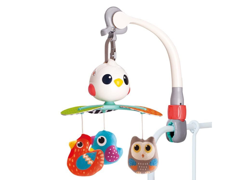 A dojenček od prvih dni svojega življenja postopoma spoznava svet okoli sebe, like, zvoke. Vrteči se vrtiljak z umirjenim zvokom, očarljivi obeski bodo poskrbeli za prve slušne, vidne in tipalne dražljaje za dojenčka. Dovolj je, da mobil obesite nad posteljico, avtosedež ali v voziček, da se otrok začne zanimati zanj.