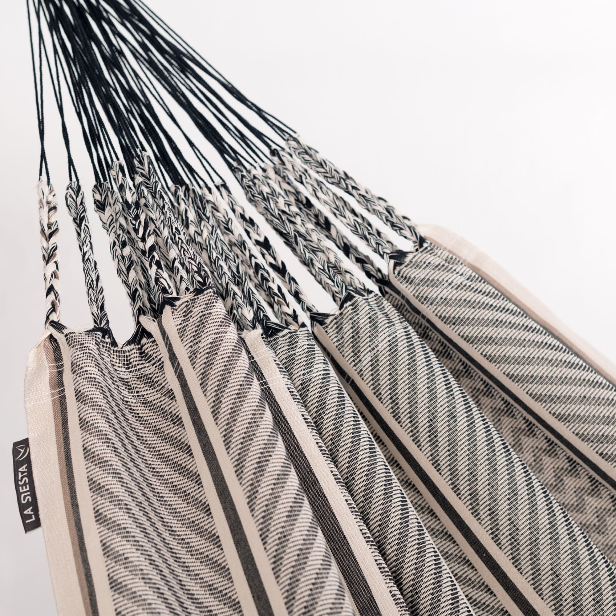 Klasična viseča mreža iz vremensko odpornega materijala. Veliko številno napenjalnih vrvi poskrbi, da se teža enakomerno razporedi in s tem se tudi podaljša življenska doba. Ročno izdelana v Kolumbiji. Celoten opis