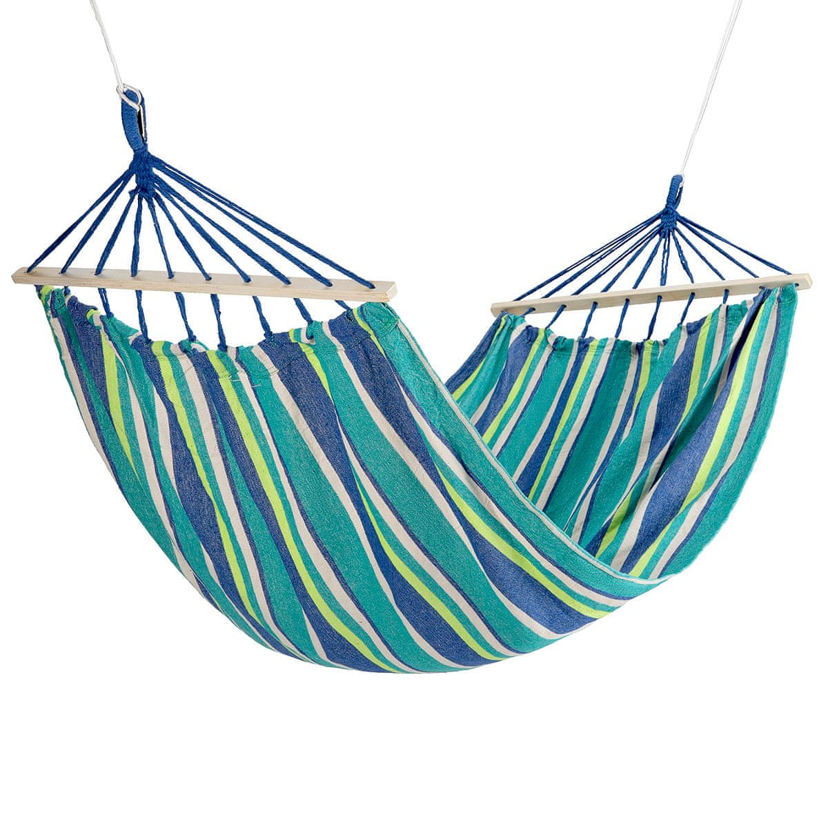 Je to hojdacia sieť určená na inštaláciu medzi stromy. Ľahko sa inštaluje, pretože všetko potrebné náčinie je súčasťou súpravy. Na blažený odpočinok potrebujete len chvíľku. Drevený trám dlhý 70 cm, umiestnený v hojdacej sieti ako výstuž, zabraňuje naťahovaniu materiálu, takže jeho elasticita sa udržiava stále na rovnako vysokej úrovni. Vďaka tomu je pohodlie používania zaručené po mnoho sezón. Hojdacia sieť dokonale priľne k telu používateľa a šírka 100 cm umožňuje každému nájsť si pohodlnú polohu. Materiál hojdacej siete je polyester a príjemná, husto tkaná bavlna. Takáto kombinácia poskytuje veľmi vysokú pevnosť a odolnosť voči akejkoľvek deformácii.