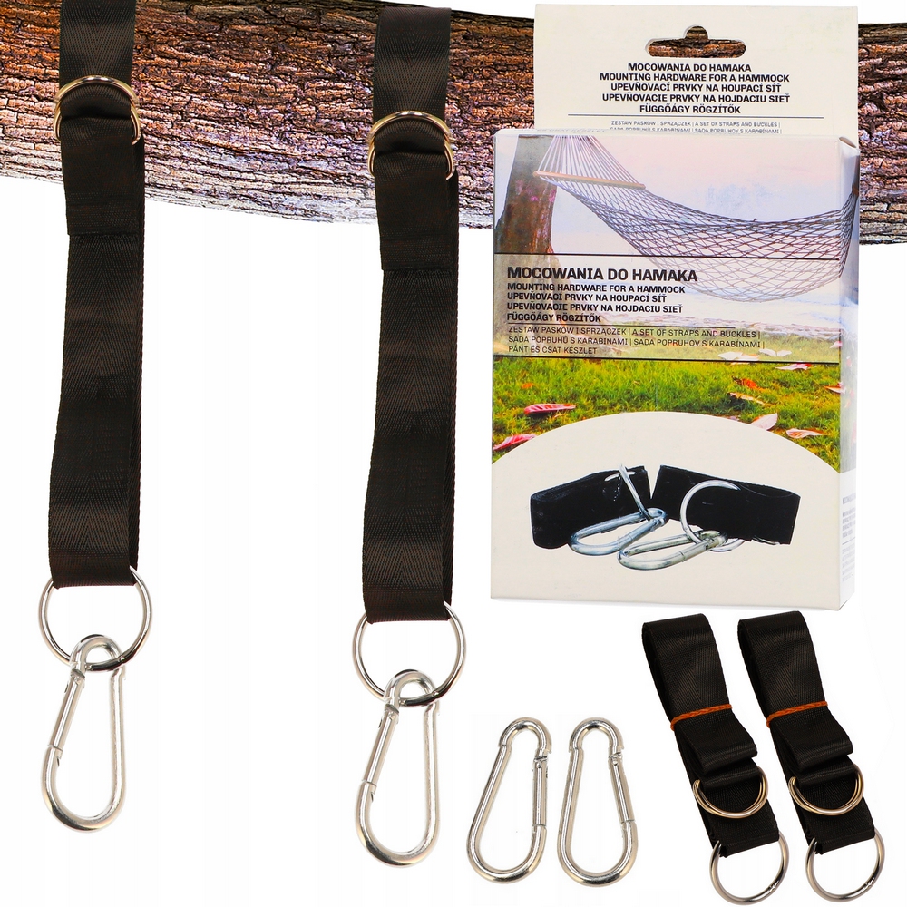 Univerzalni komplet za pritrditev viseče mreže ali gugalnice. Idealen za uporabo na domačem vrtu ali kampiranju. Izdelek je zelo enostaven za sestavljanje in ne potrebuje dodatnega orodja.