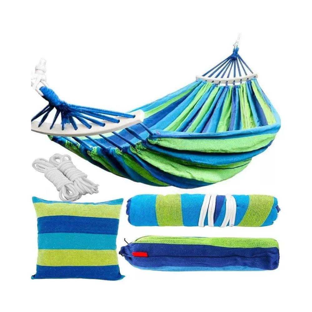 Ljubki dom Viseča mreža z blazino HAMAK za 2 osebi 260x150 cm, modro-zelena