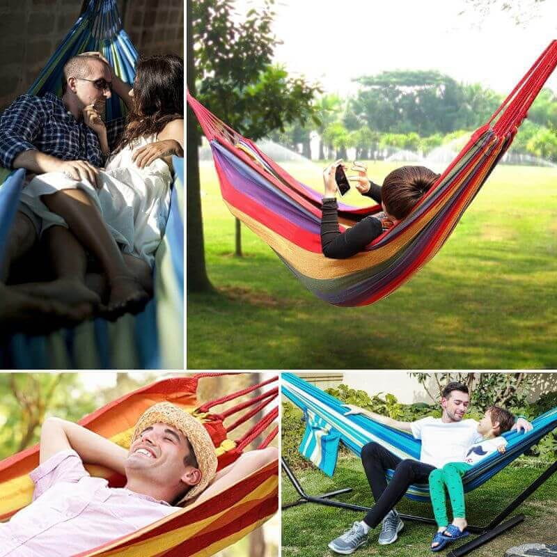 Poleg mreže prejmete še vrvi za privez. Enostavno jih zavežite okoli dreves ali drogov in se prepustite nežnemu zibanju.