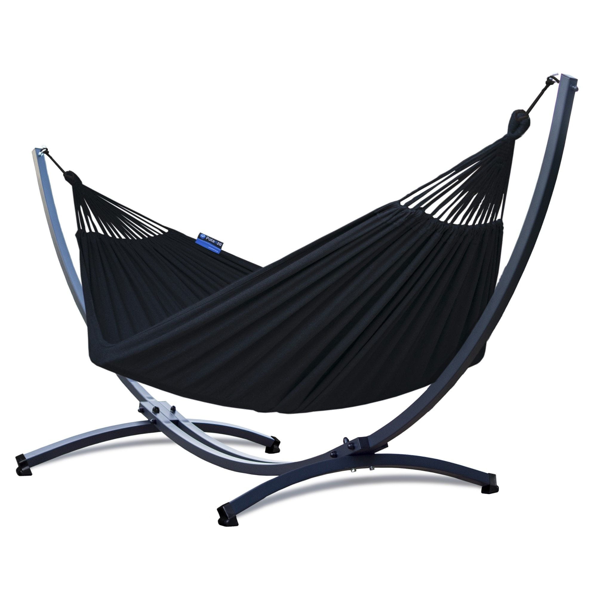 Potenza Viseča mreža ROMA XL 220×160 cm + jekleni okvir za visečo mrežo GRANDE 220 kg, črna, osnovno