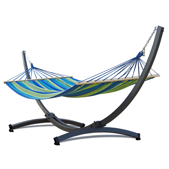 Potenza Viseča mreža s prečkami ACADIA XL 220×160 cm + jekleni okvir TYTAN, zelena/modra, osnovno