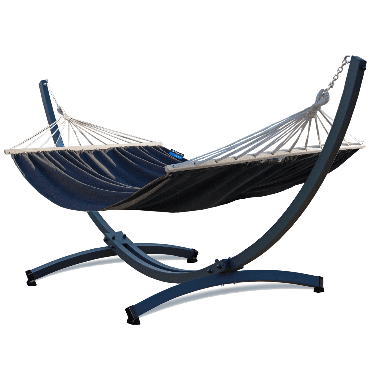Stojalo ROMA XL je opremljeno z dvema lesenima prečkama na koncih tkanine. Zaradi te ureditve lahko visečo mrežo uporabljate tudi kot vrtni ležalnik (npr. za sončenje).