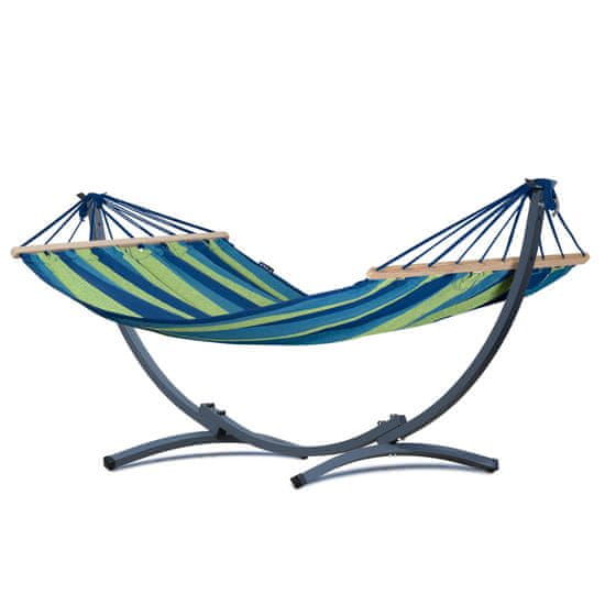 Potenza Viseča mreža za vrt, teraso ACADIA 200×120 cm + okvir za visečo mrežo KOMPAKT 200 kg, komplet visečih mrež, modra/zelena