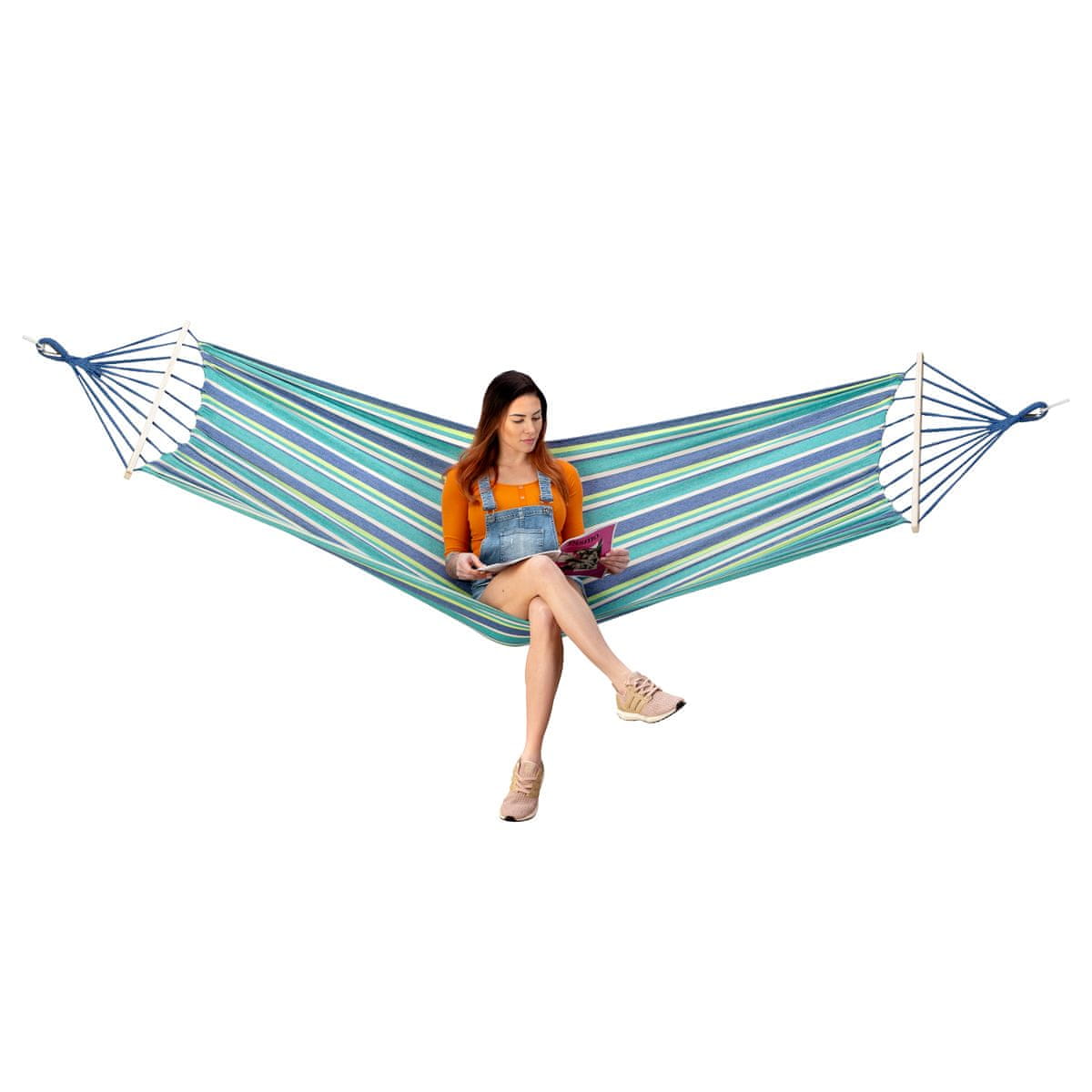 Je to hojdacia sieť určená na inštaláciu medzi stromy. Ľahko sa inštaluje, pretože všetko potrebné náčinie je súčasťou súpravy. Na blažený odpočinok potrebujete len chvíľku. Drevený trám dlhý 70 cm, umiestnený v hojdacej sieti ako výstuž, zabraňuje naťahovaniu materiálu, takže jeho elasticita sa udržiava stále na rovnako vysokej úrovni. Vďaka tomu je pohodlie používania zaručené po mnoho sezón. Hojdacia sieť dokonale priľne k telu používateľa a šírka 100 cm umožňuje každému nájsť si pohodlnú polohu. Materiál hojdacej siete je polyester a príjemná, husto tkaná bavlna. Takáto kombinácia poskytuje veľmi vysokú pevnosť a odolnosť voči akejkoľvek deformácii.