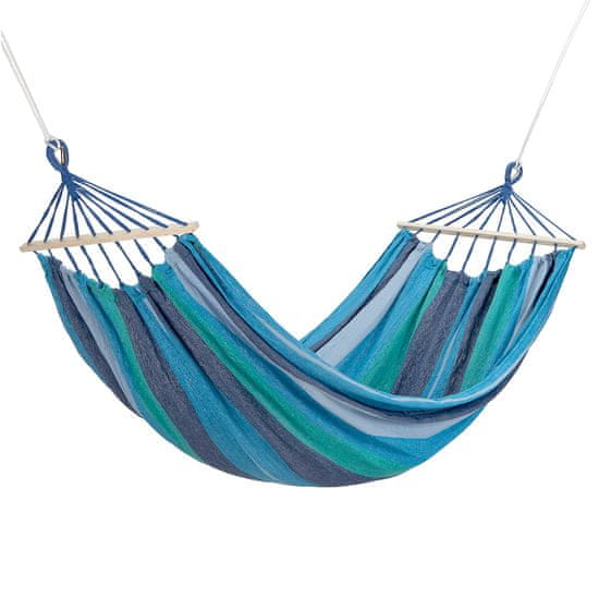 Ide o hojdaciu sieť určenú na inštaláciu napríklad medzi dva stromy. Jednoduchá montáž, všetko potrebné náradie je súčasťou sady. Na blažený odpočinok potrebujete len chvíľku. Drevený trám dlhý 70 cm, umiestnený v hojdacej sieti ako výstuž, zaisťuje, že sa materiál nenatiahne, a tým jeho elasticita zostane na rovnakej, vysokej úrovni. Vďaka tomu budeme pociťovať pohodlie pri používaní po mnoho sezón. Hojdacia sieť sa dokonale prispôsobí telu používateľa a šírka až 150 cm zaručuje, že si každý nájde pohodlnú polohu. Materiál hojdacej siete je polyester a príjemná, husto tkaná bavlna. Takáto kombinácia poskytuje veľmi vysokú odolnosť a odolnosť voči akejkoľvek deformácii.