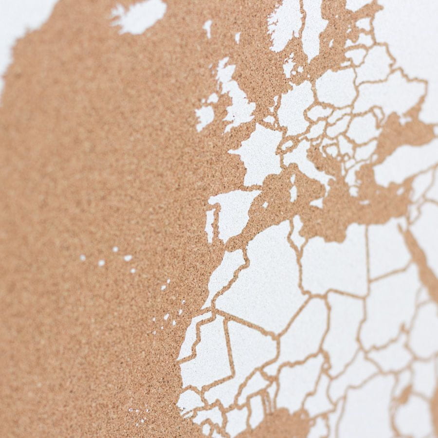 Zemljevid na plutovinasti plošči, ki je idealen za načrtovanje vaših naslednjih potovanj in ohranjanje lepih spominov na kraje, ki ste jih obiskali. Celoten opis