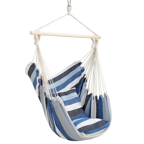 Ta vrsta stola nekoliko spominja na visečo mrežo, vendar ga je veliko lažje sestaviti. To je posledica dejstva, da jih obešamo za en ročaj. To vam omogoča, da ga sestavite doma, na balkonu, na vrtu ali celo, da vzamete naš najljubši stol na kampiranje. Prav tako so alternativa, kadar ni dovolj prostora za obešanje viseče mreže. Ojačan jeklen ročaj vam bo omogočil dolgo in varno uporabo stola.