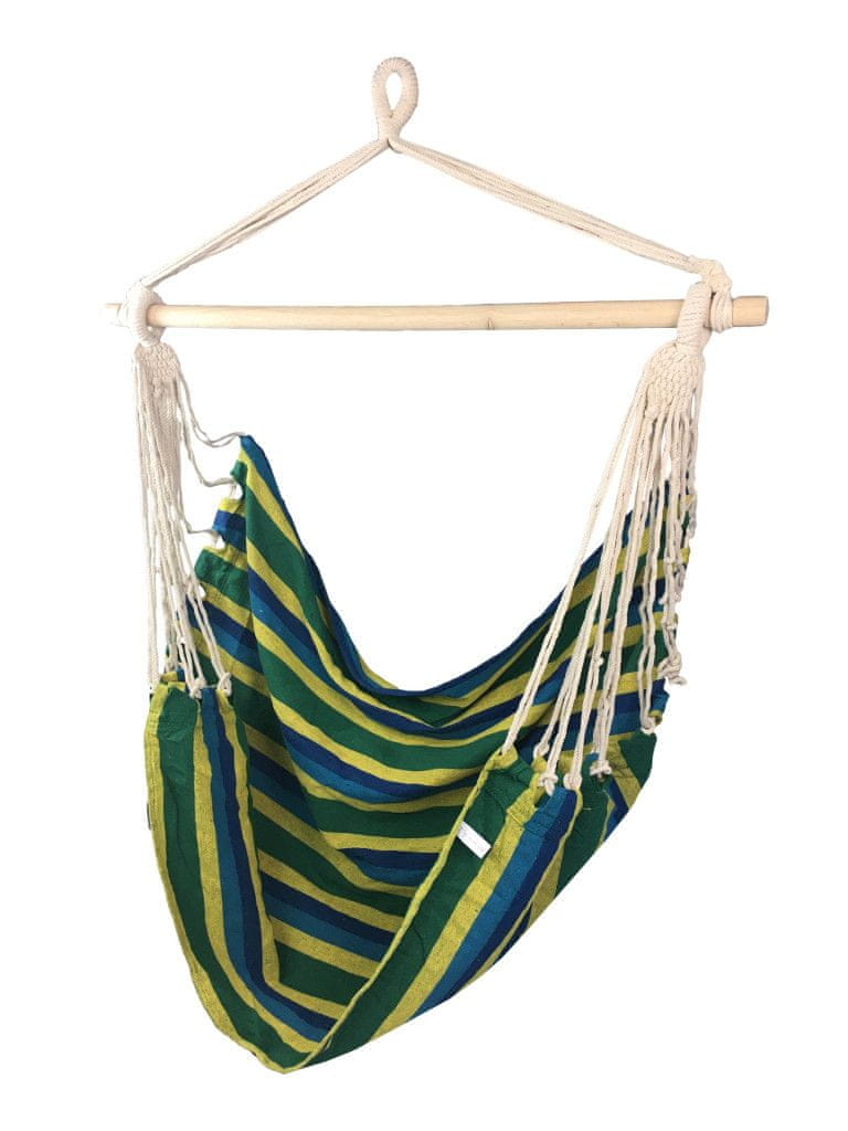 Udoben gugalni stol SEDCO RELAX 3 zagotavlja kakovostno sprostitev, bodisi na vrtu bodisi na poti. Sedež je izdelan iz zelo trpežne tkanine. Poleg tega je masivna lesena palica izdelana tako, da vzmetne vrvi sedežne površine ali zgornjega pasu ne morejo zdrsniti v sredino palice in s tem ogroziti varnosti uporabe. Stol bo nudil dovolj udobja za vse starostne kategorije. Oblika sedežne površine je določena samo z eno palico, kar omogoča sedečim, da zavzamejo različne vrste položajev. Pritrditev gugalnega stola je zelo enostavna, zahvaljujoč vnaprej oblikovanemu masivnemu vozlu, ki je v zgornjem delu konstrukcije.
