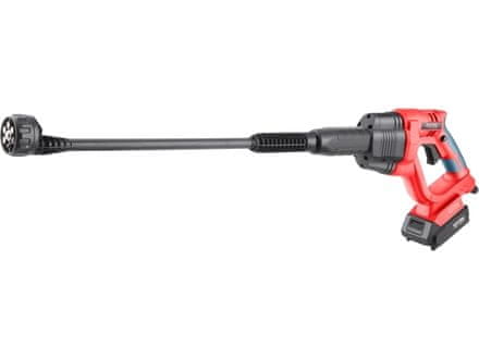 Akumulatorski tlačni čistilnik je namenjen za čiščenje pod pritiskom z vodo z max. Gre za srednjetlačni čistilnik z največjim tlakom 22 barov. Zahvaljujoč baterijskemu napajanju in funkciji samooskrbe z vodo lahko z nastavitvijo za prhanje enostavno pridete kamor koli in enostavno operete npr. kolo, avtomobil, pešpot ali teraso, vrtno pohištvo, pralno fasado ali vodno cvetje. Čistilec lahko prek hitre spojke priključite na klasično vrtno cev, priključeno na vodovod, ali pa uporabite priloženo cev s sesalno košaro in uporabite prosto dostopen vir vode (iz vedra, reke, jezera, soda za deževnico …). Če se naprava Accu Vap napaja iz vodovodnega omrežja, jo lahko uporabljate tudi brez pipe, vendar bo izhodni tlak vode iz šobe bistveno nižji. S priloženim adapterjem lahko v nujnih primerih uporabite tudi vodo iz navadne plastenke PET. Zaradi majhne porabe vode lahko čistilnik zelo dobro uporabljate tudi pri manjših količinah vode. Naprava je opremljena z večnamensko šobo s šestimi nastavljivimi vrstami curkov: ravni 0?, ventilatorski 15?, 25?, 40?, stranski curek pod kotom 45? za pranje, na primer strehe ali podvozja avtomobila, in tuš, ki ga lahko uporabite za zalivanje rož. Za povečanje učinkovitosti čiščenja se lahko na čistilec pritrdi nastavek za šampon s posodo za shranjevanje detergenta, ki je zasnovan za čistilce s tlačno vodo, za nanos detergenta pod nizkim tlakom (postopek šamponiranja), nato pa se detergent po določenem času po nanosu splakuje s čisto tlačno vodo. Zaradi priključka za cev na zadnji strani čistilnika ta ne bo toliko ovirala dela. Za običajno delo zadostujeta ena ali dve 2000 mAh bateriji, ki ju lahko hitro napolnite v hitrem polnilniku, za zahtevnejše ali daljše delo pa priporočamo večje baterije s kapaciteto 4000–8000 mAh. Baterijo lahko uporabljate v vseh vrstah orodij serije EXTOL SHARE20V. Zaradi uporabljene litij-ionske tehnologije jo lahko kadar koli ponovno napolnite, ne da bi se zmanjšala njena zmogljivost. Li-ionska baterija zelo počasi izgublja energijo zaradi samopraznjenja in dolgo časa zdrži napolnjena in pripravljena za uporabo.