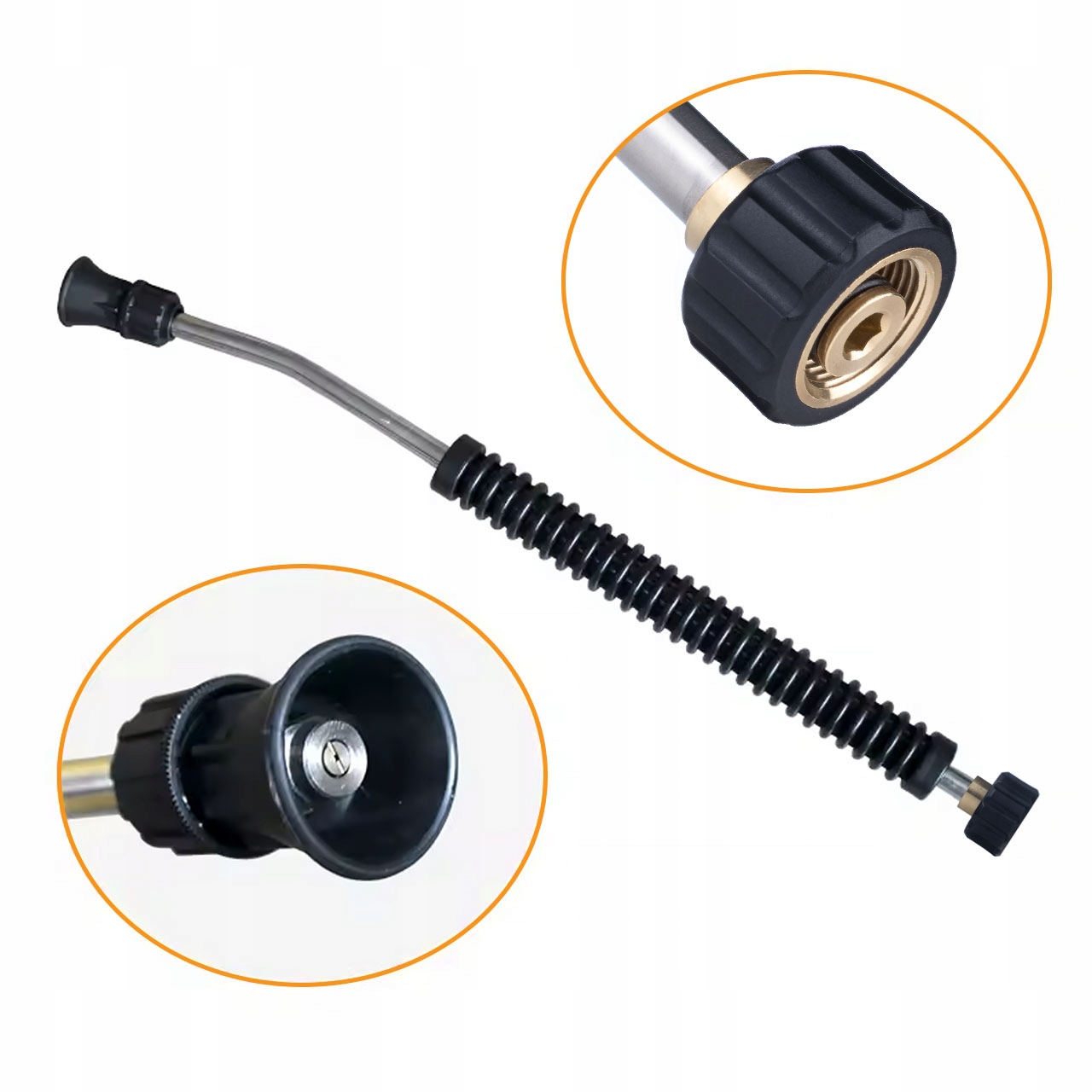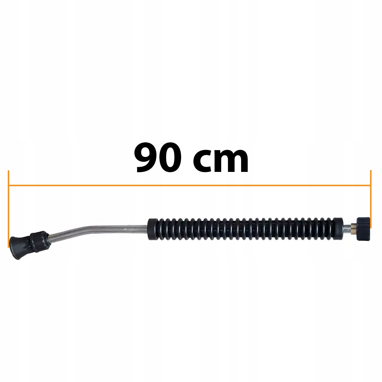 90 cm dolgatlačno-čistilna lica z 15° upogibom, ploščato šobo in gumiranim ročajem, namenjena za visokotlačne čistilnike Karcher serij HD in HDS. Opremljena je s starim Karcher M22 priključkom z notranjim navojem M22×1,5, ki zagotavlja trdno in varno povezavo. Ploščata šoba omogoča učinkovito čiščenje večjih površin in natančno odstranjevanje umazanije. Izdelana je iz visokokakovostnega jekla, odpornega proti koroziji in visokemu tlaku.