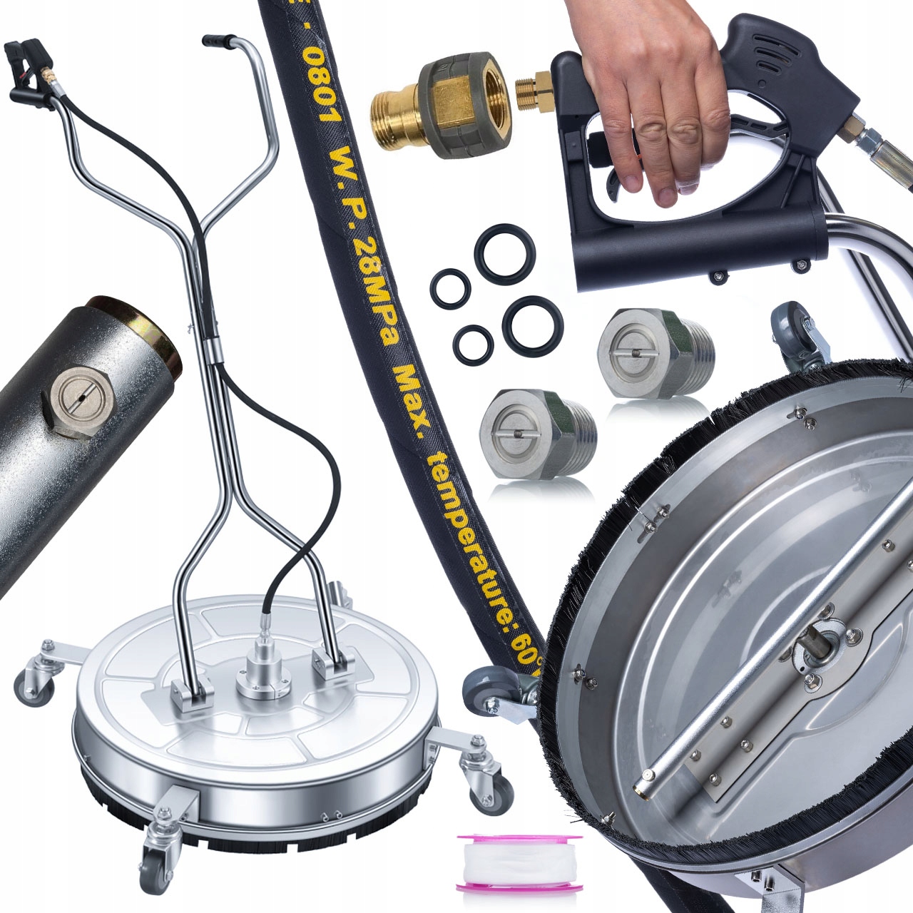 Rosfix Nadomestni Del za Visokotlačni Čistilnik Karcher HD/HDS – Swivel Ščetka 61 Cm, 2 Šobi, Inox