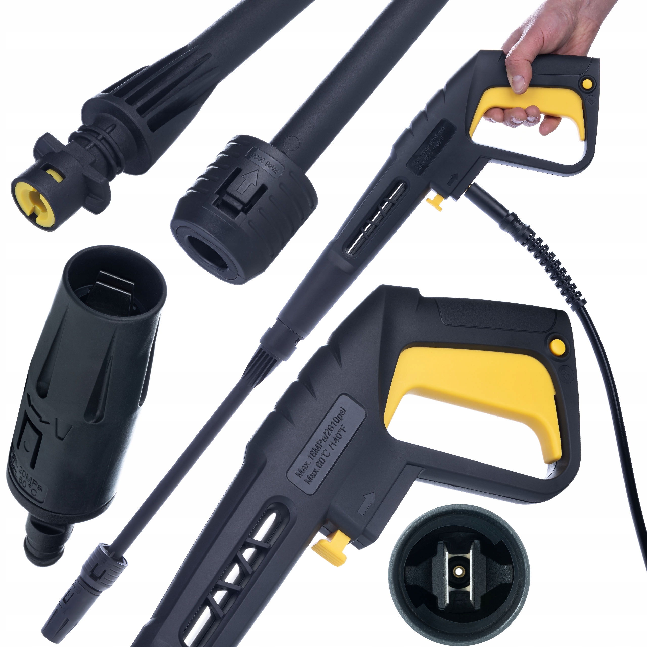✅ Enostavna namestitev: M18 navoj za pritrditev in priključek, združljiv s pištolami Karcher „K“.