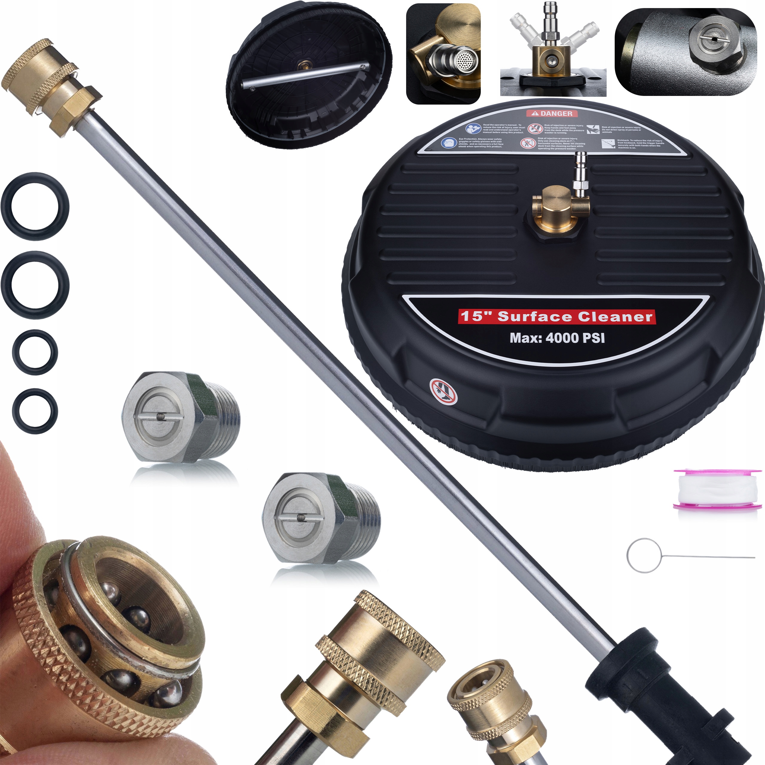 JetLine T-Racer ProSet 15" + 58 cm lica | Komplet za visokotlačne čistilnike Kärcher K2–K7 | Vrtljiva krtača s hitrim sprostilnim spojem | Nadomestne šobe + lica z medeninastim spojem | Za tlakovce, terase, fasade in vozila