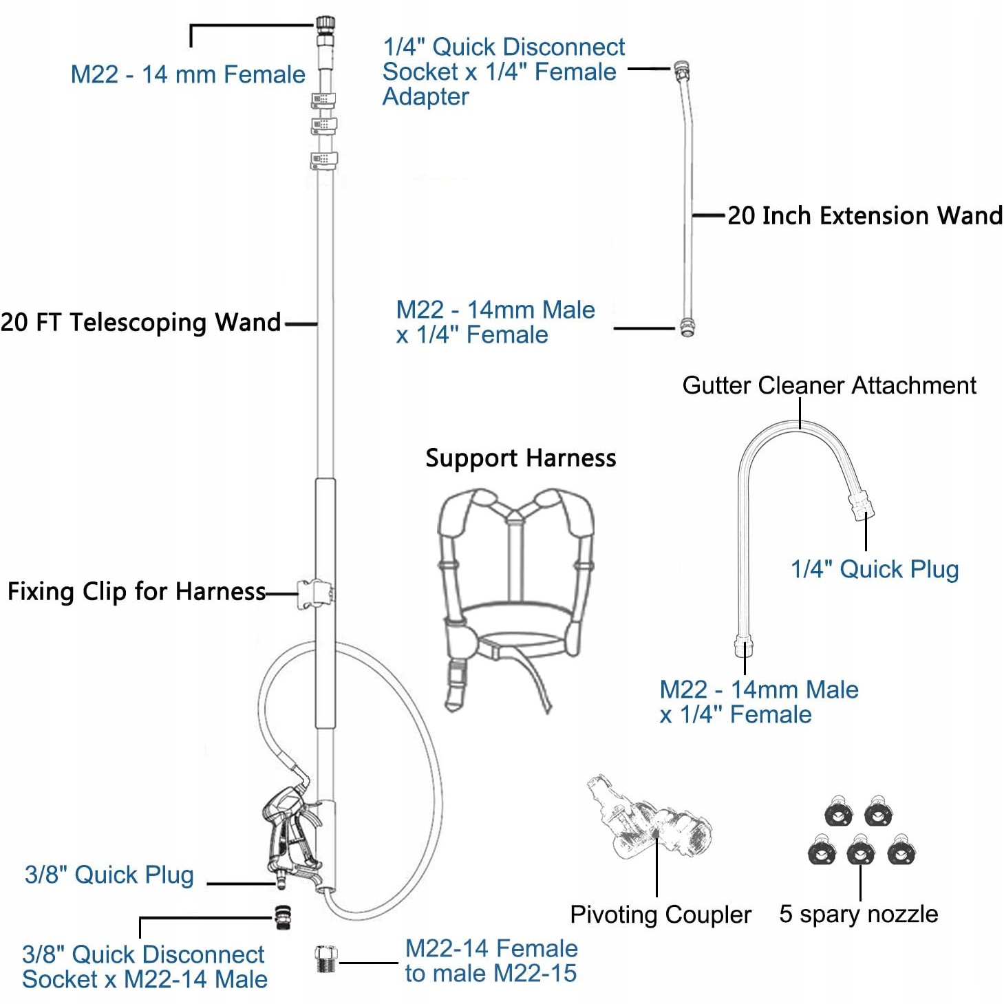 ✅ Hitri priključek: enostavno in hitro priključevanje in odklapljanje šob, kar poveča udobje uporabe pralnega stroja z visokim tlakom.