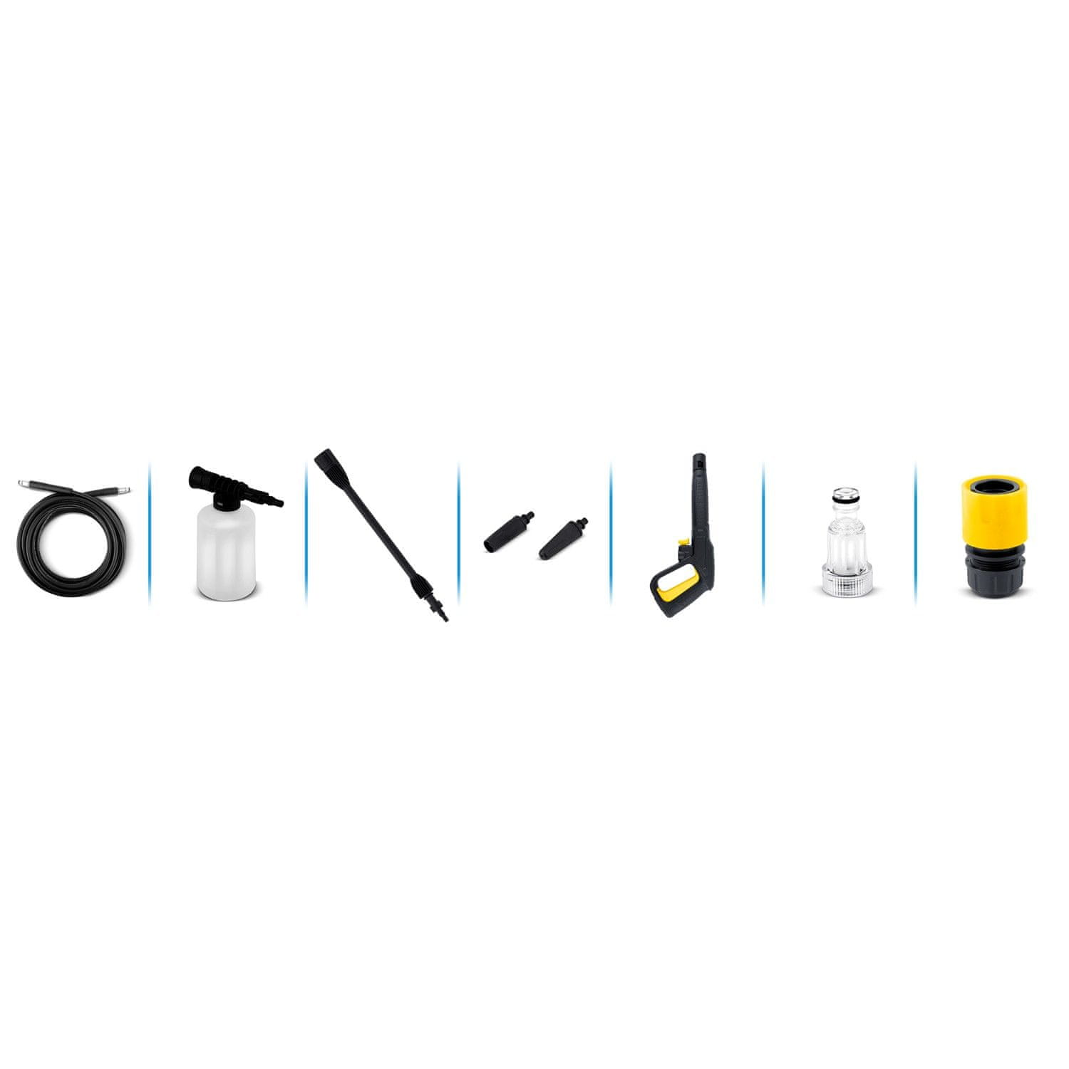 – visokotlačni čistilec je opremljen z vso potrebno opremo, zato vam ni treba skrbeti za nič, saj imate vse, kar potrebujete! Komplet vsebuje: