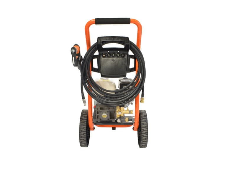 Z vrhunskim visokotlačnim čistilnikom Gaspper GP3300HP je čiščenje enostavno in prijetno. Z delovnim tlakom 220 barov in pretokom vode 14 l na minuto je ta visokotlačni čistilnik primeren za različna čistilna dela okoli hiše, vikend hiše, garaže. S priloženo 10-metrsko cevjo, snemljivo ergonomsko pištolo in enostavno kompaktno konstrukcijo je zasnovan za čiščenje najhujše umazanije. Visok tlak in pretok ustvarja kakovostna visokotlačna črpalka, katere glavna prednost je bistveno daljša življenjska doba kot električne črpalke v primerljivem razredu. Ta naprava je opremljena z visokotlačno šobo 0 °, 15 ° 25 ° in 40 °, 10 m cevjo, ergonomsko tlačno pištolo in podaljškom. Poganja ga visokokakovosten motor z notranjim izgorevanjem HONDA, ki vam bo ob rednem vzdrževanju zagotavljal leta brezhibnega delovanja.