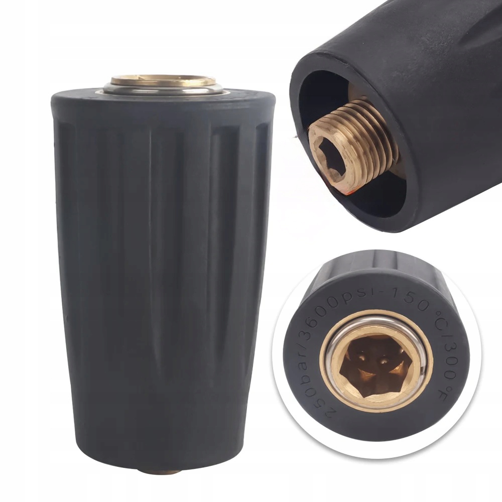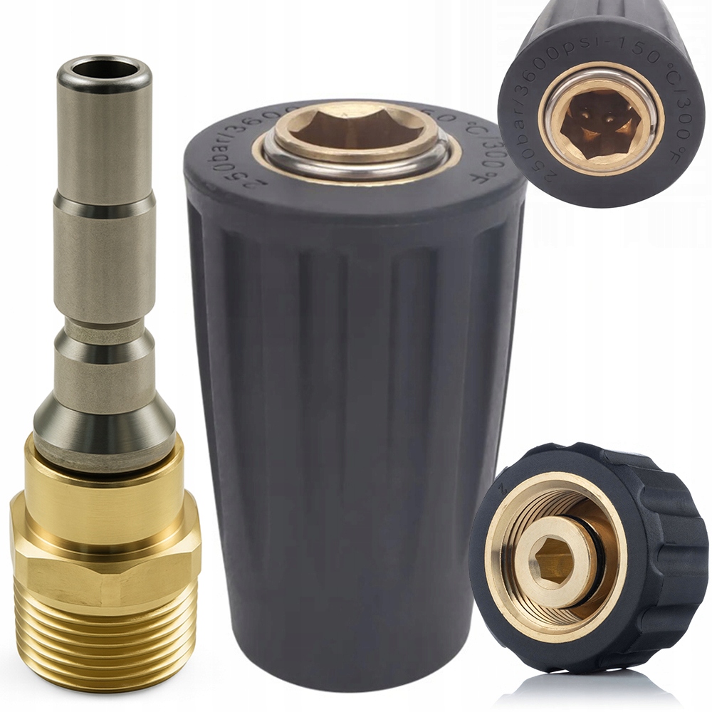 - ✅ Vsestranskost: Adapter omogoča priključitev dodatkov z navojem 1/4" na pištolo z navojem M22, kar znatno razširi možnosti uporabe visokotlačnega čistilnika.