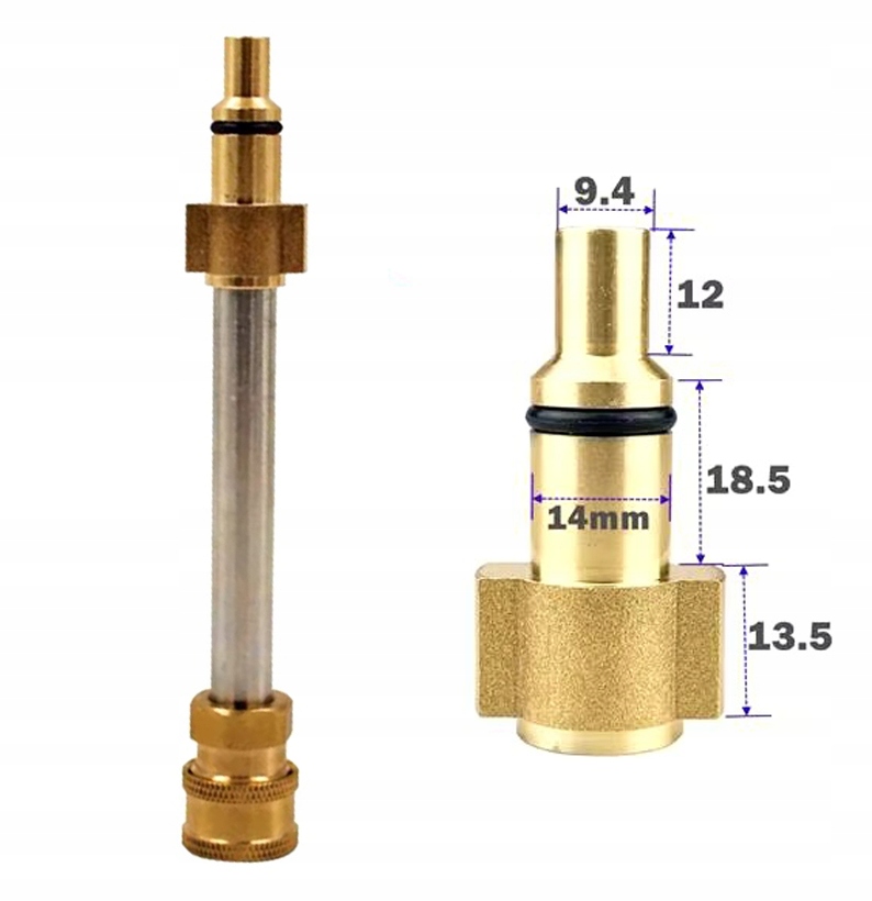 Univerzalna uporaba:Ustreza večini pripomočkov, kot so šobe, pištole za peno in čistila za površine. Olajša pranje avtomobilov, dovozov, pločnikov in fasad.