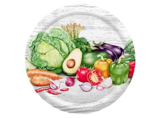 Material kovina, dekor zelenjava glede na razpoložljivost na zalogi. Pokrovček za kozarce z navojem (Twist) s premerom vratu 66 mm. Cena za pakiranje po 10 kosov. EAN 0000004144687