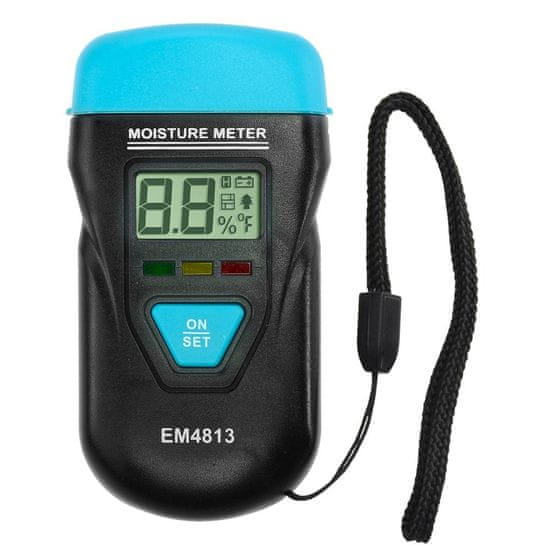 Digitalni merilnik vlage v lesu Material: trdna plastika Napajanje: 1,5 V, LR44 ali enakovredno, 4 kosi Osvetlitev ozadja Hranjenje podatkov Celoten opis