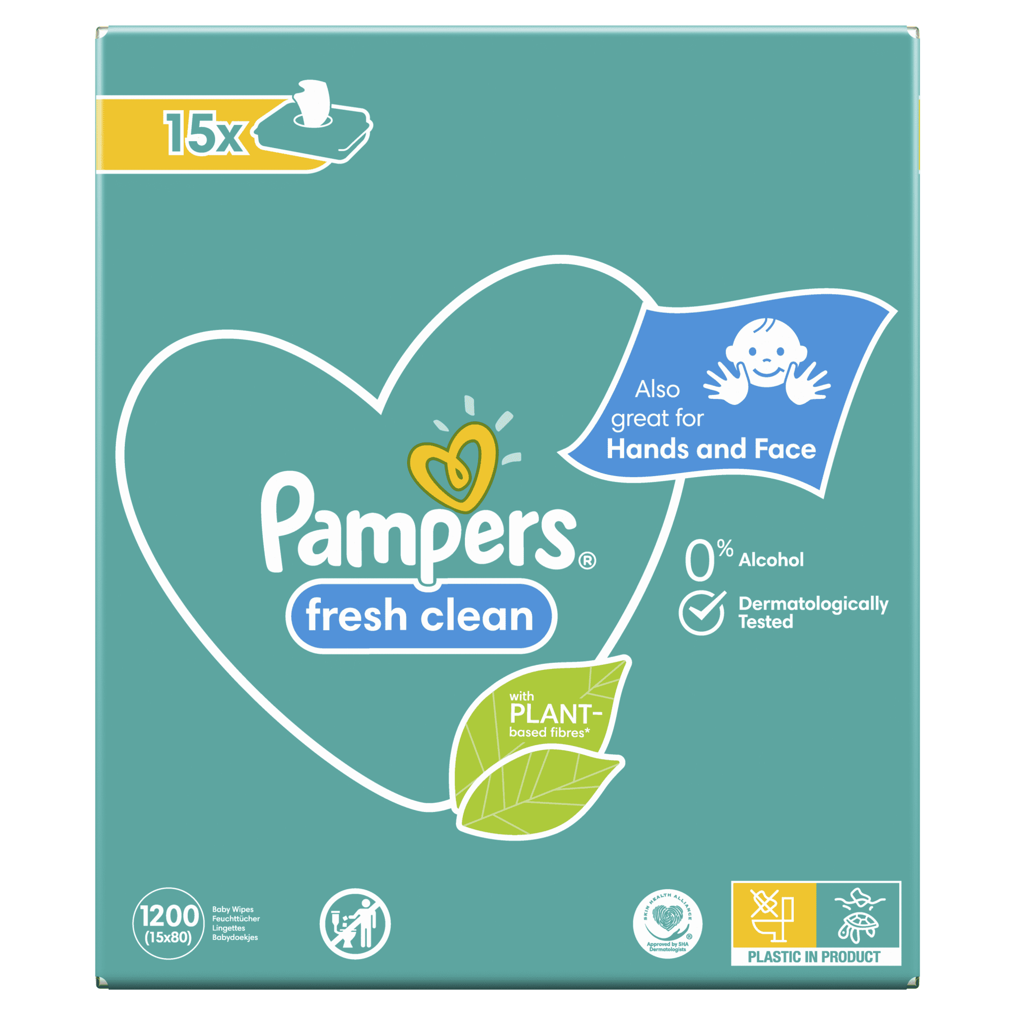 Pampers Fresh Clean Baby otroški čistilni robčki, 15 pakiranj = 1.200 robčkov