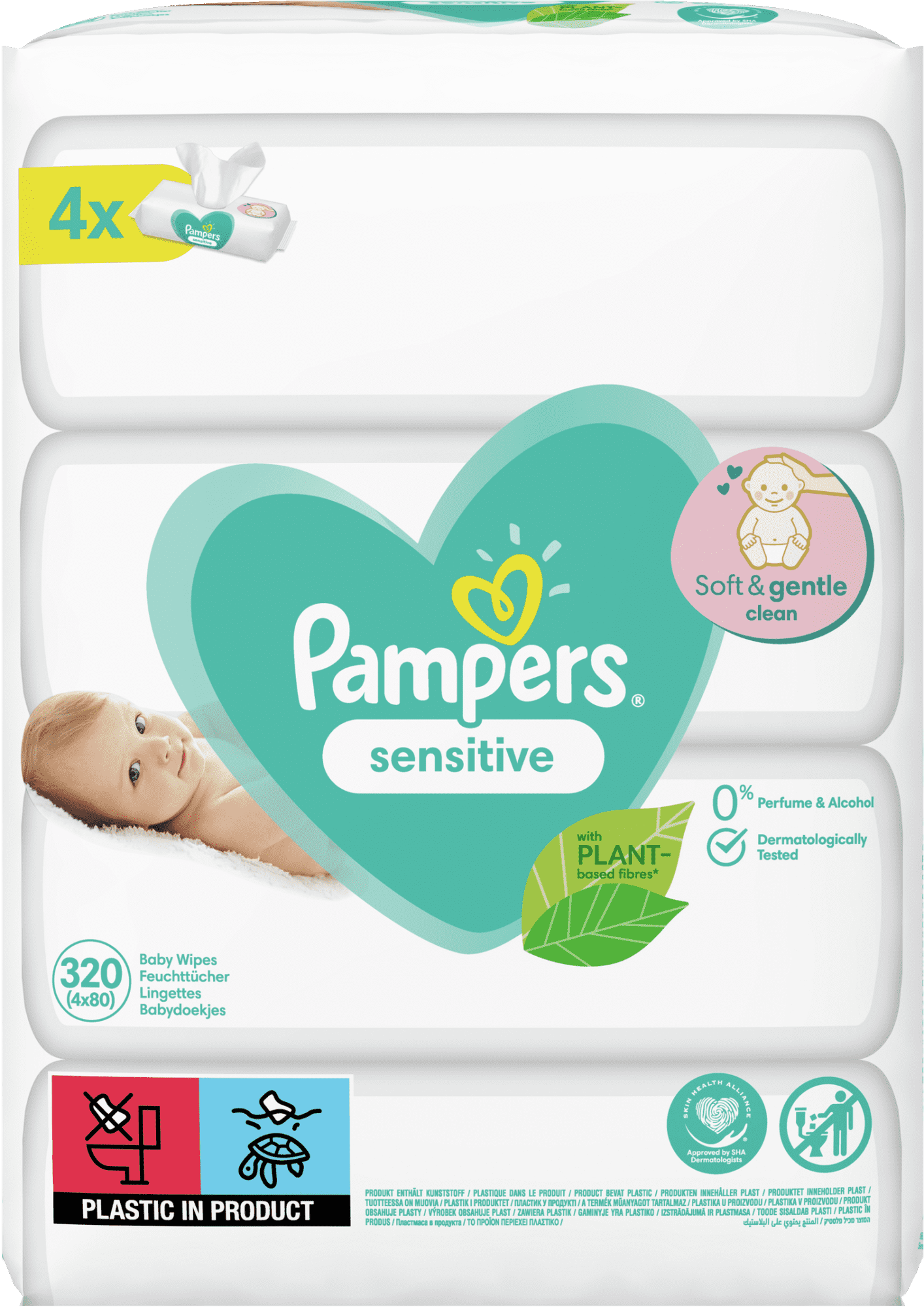 Pampers XXL Sensitive vlažilni robčki, 4x 80 kosov