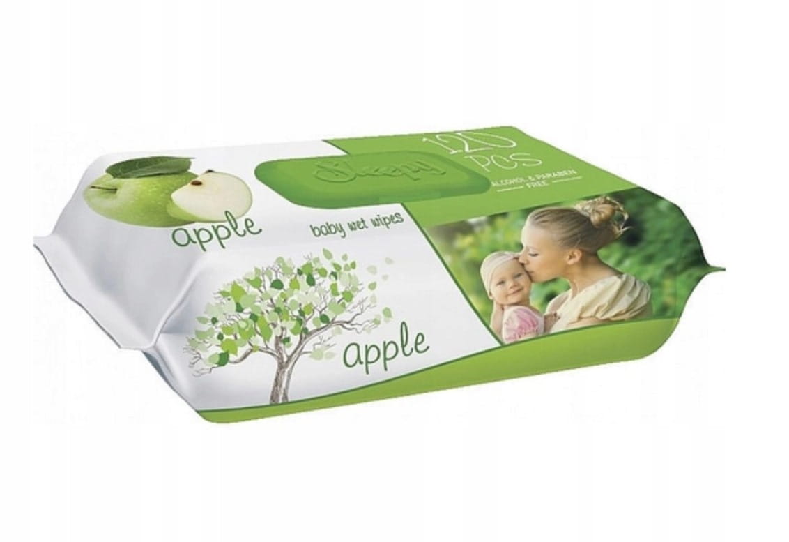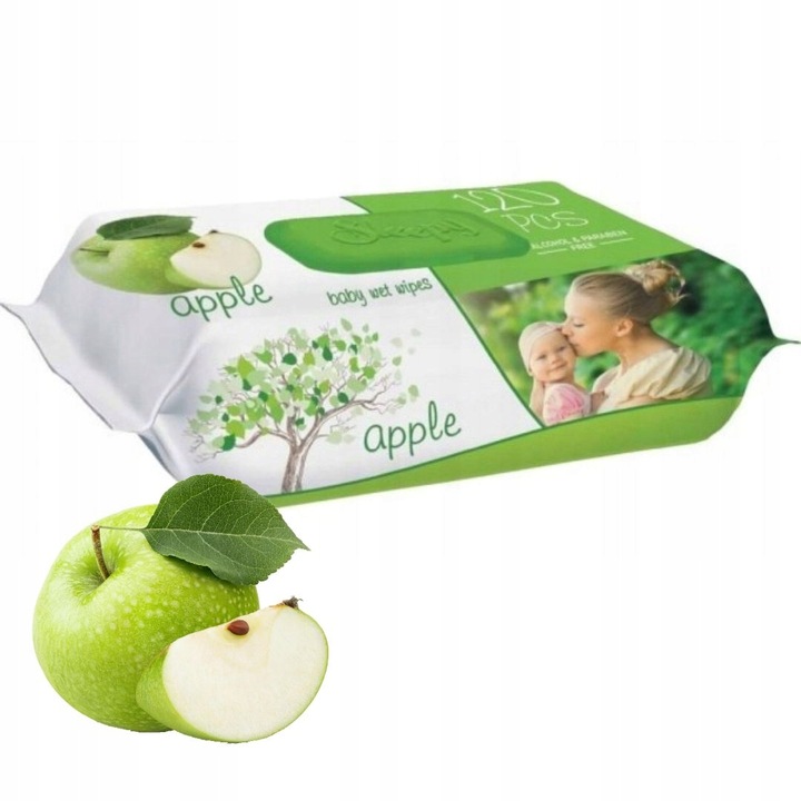 Vlažilni robčki za roke in telo Sleepy, z zapiranjem v obliki zelenega jabolka, 120 kosov Celoten opis