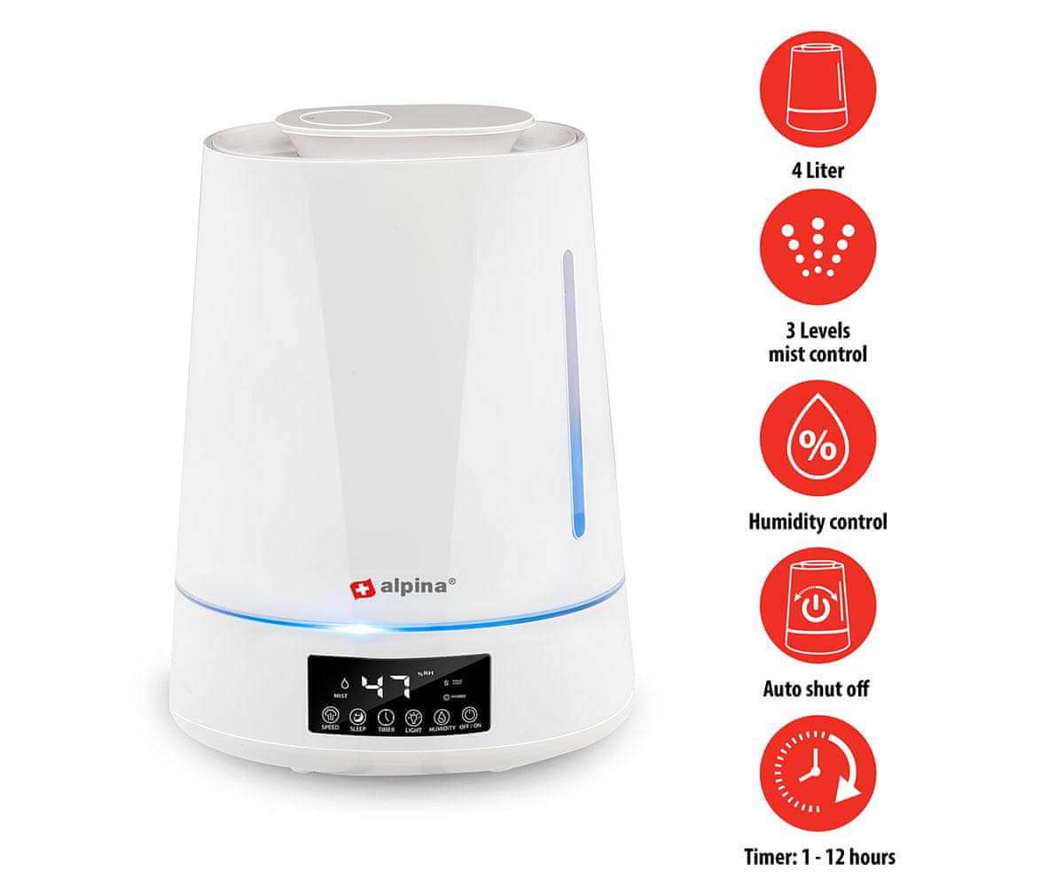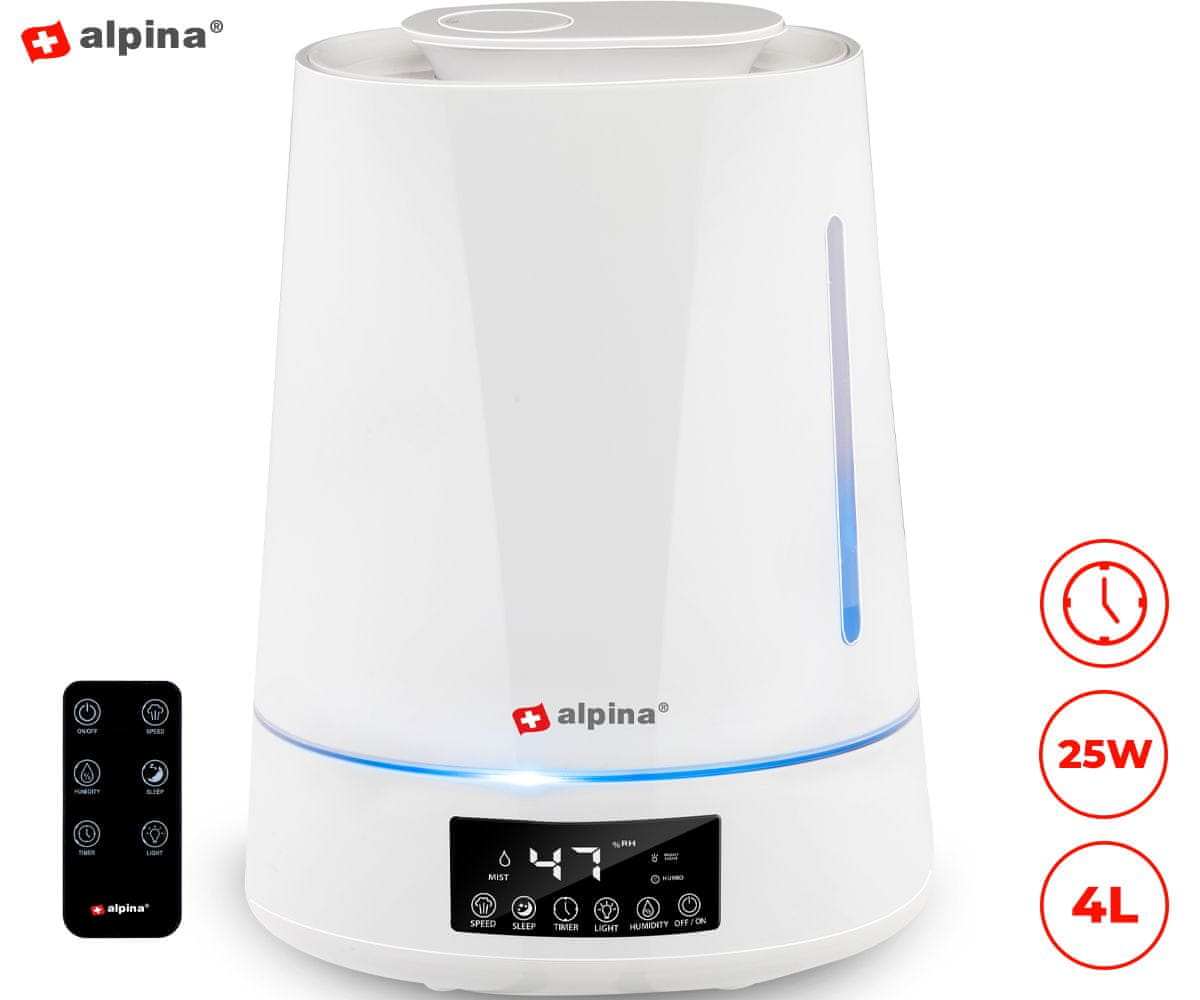 Alpina vlažilec zraka, 4 L, časovnik, LED osvetlitev, daljinec