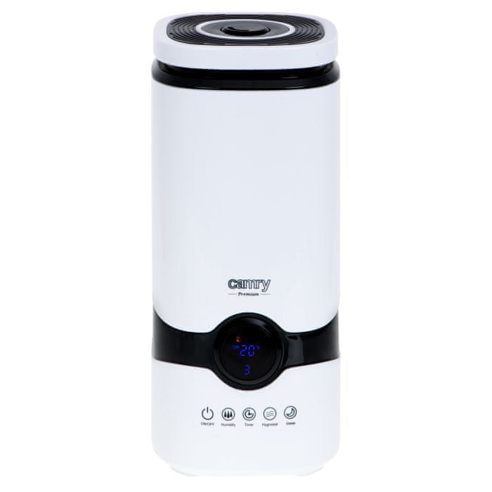 Camry vlažilec zraka CR7964 4,2L: Ultrazvočna tehnologija razbije vodo na drobne delce megle, ki vlažijo zrak. Ima LCD nadzorno ploščo, daljinec in funkcijo samodejnega izklopa. Z zmogljivostjo 300 ml/uro in pokrivno površino 35 m2 je idealen za udobno spanje. Dimenzije: 16 × 16 × 37 cm. Celoten opis