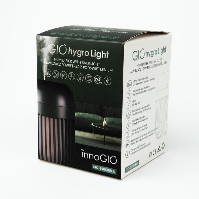 InnoGIO GIOhygro vlažilnik zraka z osvetlitvijo Zelena