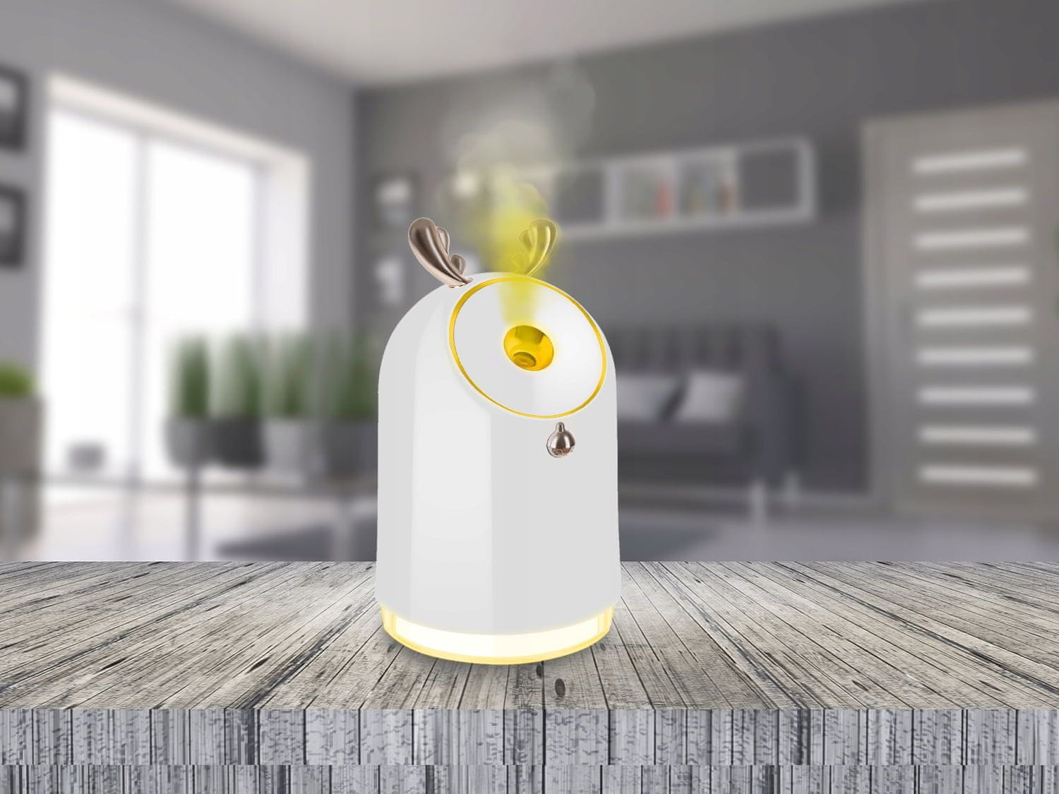 • PRIVLAČEN VIDEZ –  vlažilec ima odličen dizajn, ki spominja na severnega jelena z zlatimi rogovi. Lahko ga uspešno uporabite kot božični okras in kot ekskluzivno dekoracijo. Zaradi svoje kompaktne velikosti ne zavzame veliko prostora in se prilega kateri koli mizi ali nočni omarici.