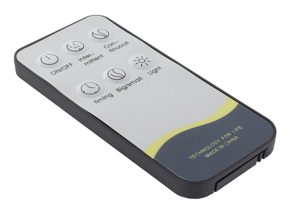 Vlažilnik lahko osvetlite v 7 barvah, v dveh jakostih svetilnosti ali kot spreminjajoča se barvna luč RGB.Če želite vklopiti želeno barvo, pritisnite in za trenutek držite gumb LIGHT na daljinskem upravljalniku, medtem ko lučka sveti, npr. modra.